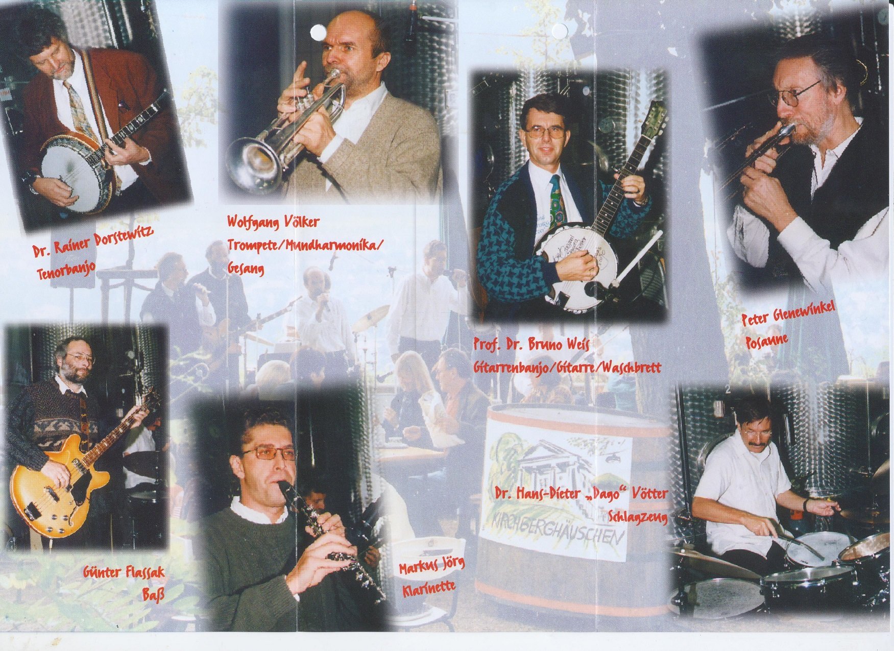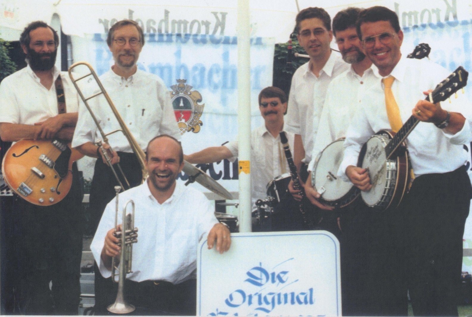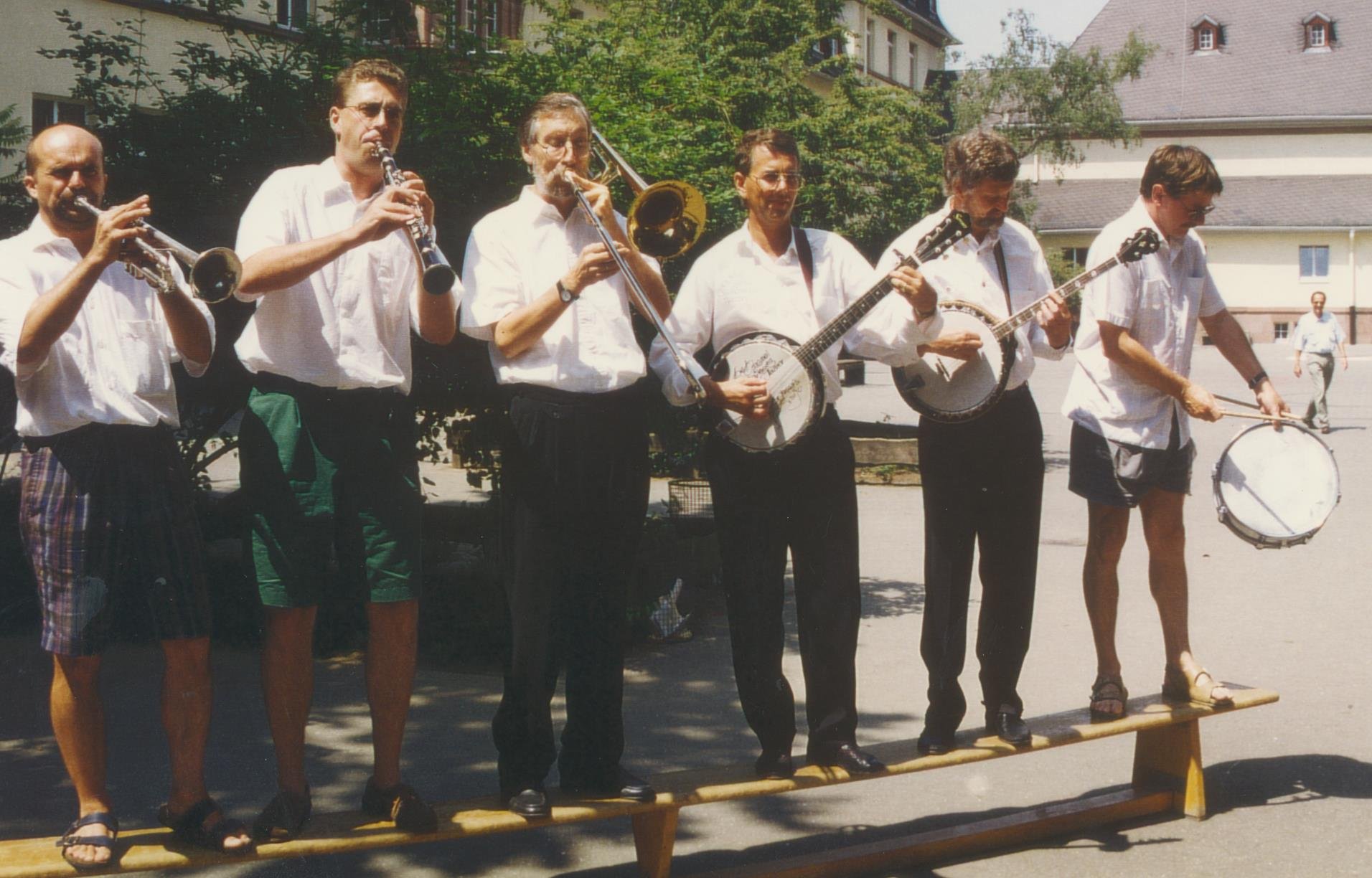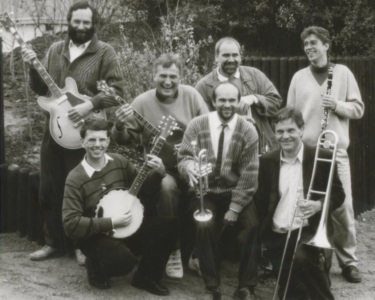 Die Bilder aus dem Jahre 1990 zeigen die damalige Besetzung der Band. Wolfgang Völker: Trompete, Gesang - Markus Jörg: Klarinette - Peter Glenewinkel: Posaune - Günter Flassak: Bass - Fritz Straub: Schlagzeug - Klaus Straub: Tenorbanjo - Dr. Bruno Weis: Plektrum-Banjo, Waschbrett. Aus dieser Zeit stammt auch der Schriftzug der Jazzer, der von Klaus Straub kreiert wurde.