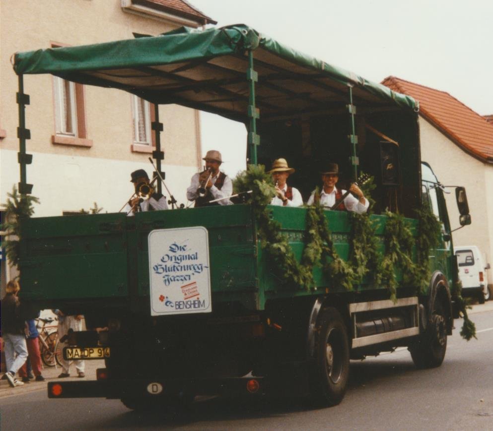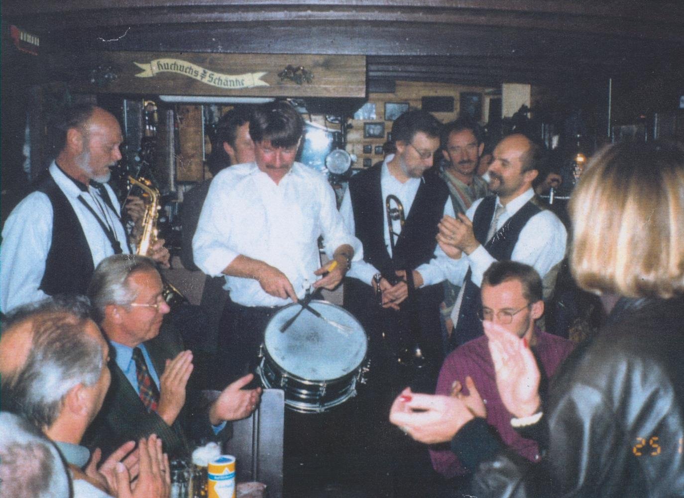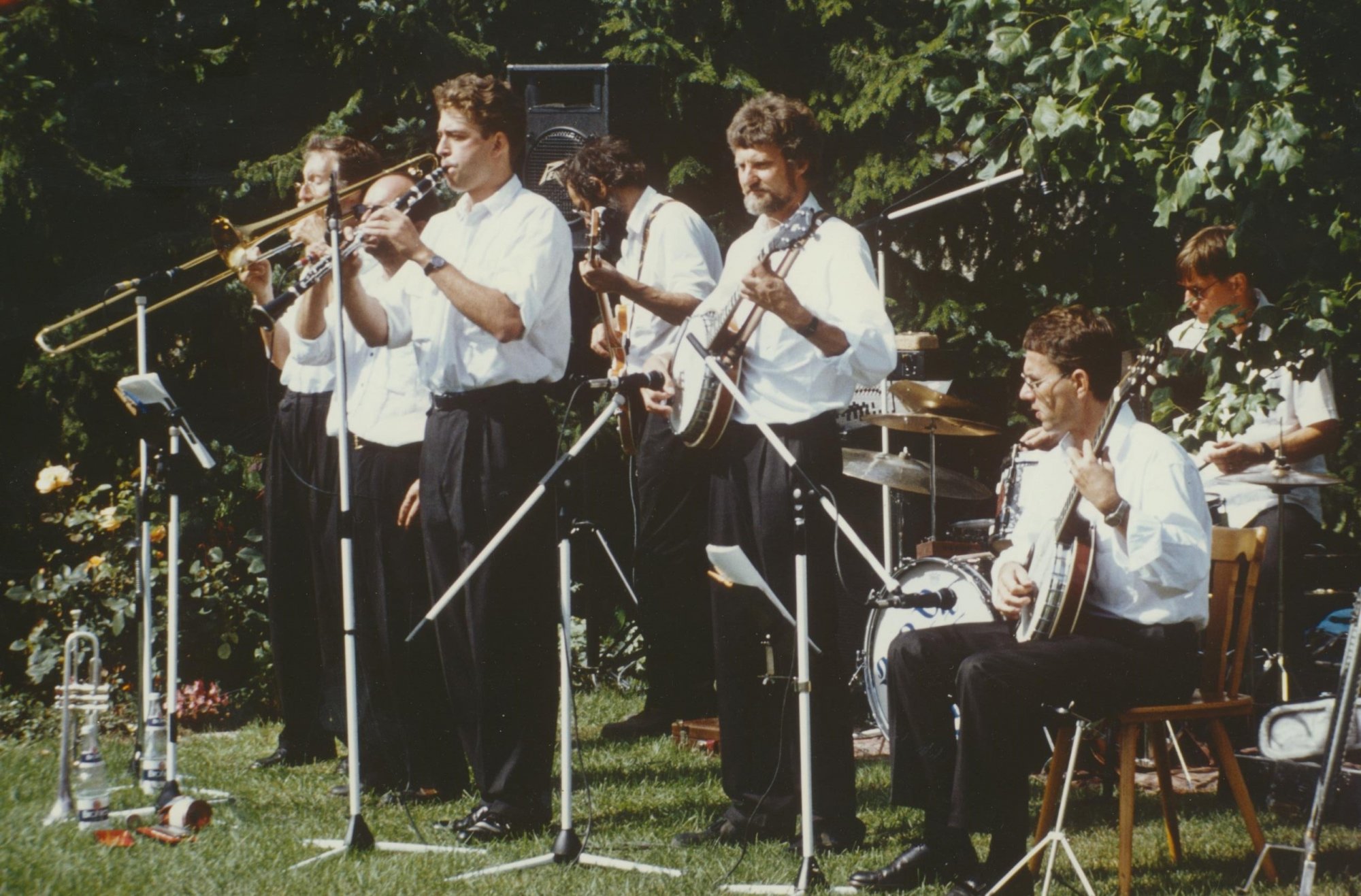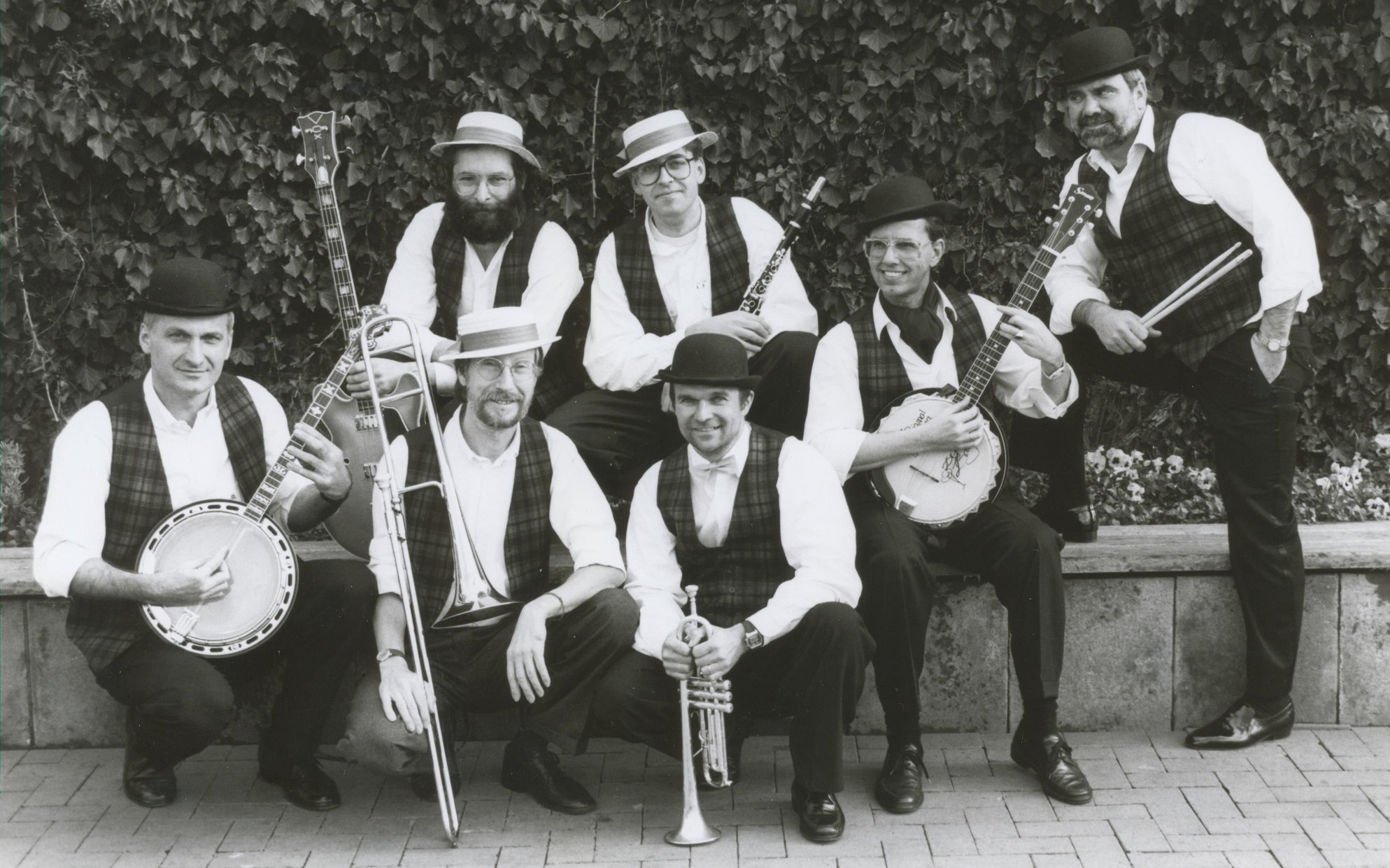 Die Bilder aus dem Jahre 1990 zeigen die damalige Besetzung der Band. Wolfgang Völker: Trompete, Gesang - Markus Jörg: Klarinette - Peter Glenewinkel: Posaune - Günter Flassak: Bass - Fritz Straub: Schlagzeug - Klaus Straub: Tenorbanjo - Dr. Bruno Weis: Plektrum-Banjo, Waschbrett. Aus dieser Zeit stammt auch der Schriftzug der Jazzer, der von Klaus Straub kreiert wurde.