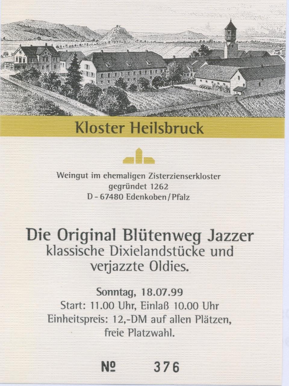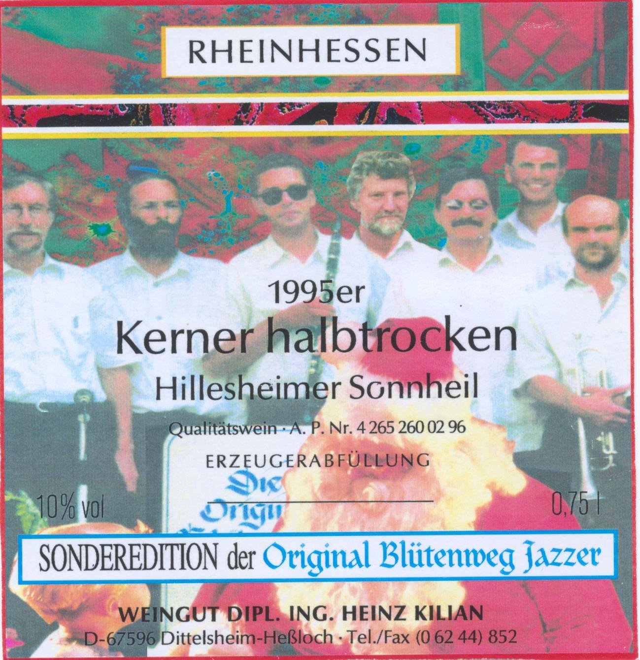 Ein guter Jahrgang: Der Original Blütenweg-Jazzer Wein, Jahrgang 1995, Kerner halbtrocken