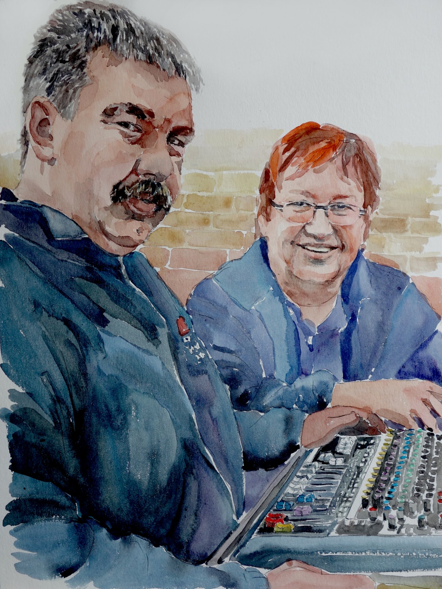 Am 13.07.1989 entstand nach einem Auftritt der Band zur Eröffnung einer Ausstellung von Frau Ursula Schnell in der Rathaushalle in Heppenheim das erste Aquarell der Gruppe.